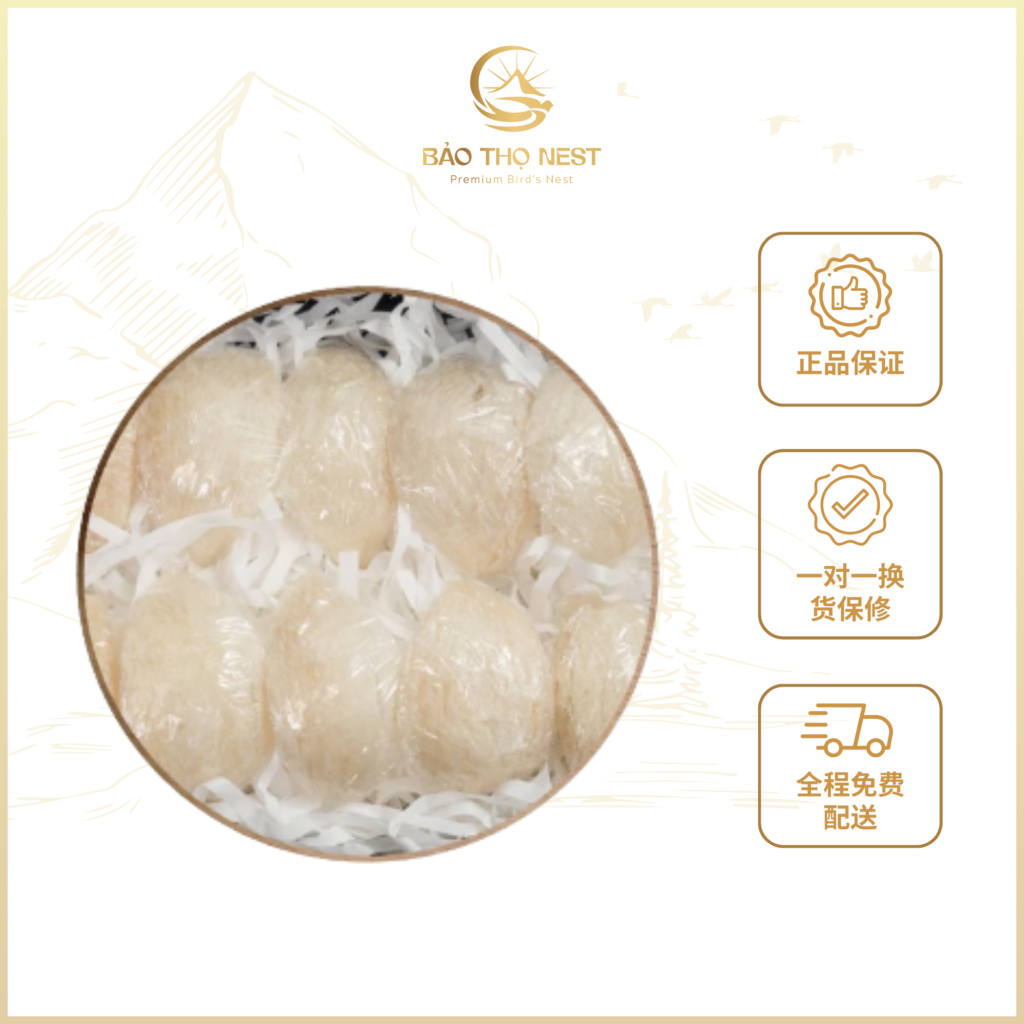 保寿 A5 燕盏采用 100% 天然燕丝为原料,经过人工精挑细选,去除羽毛和杂质,并在现代化生产线上处理与包装,从而保留了纯天然燕窝的营养成分和原始色泽。
